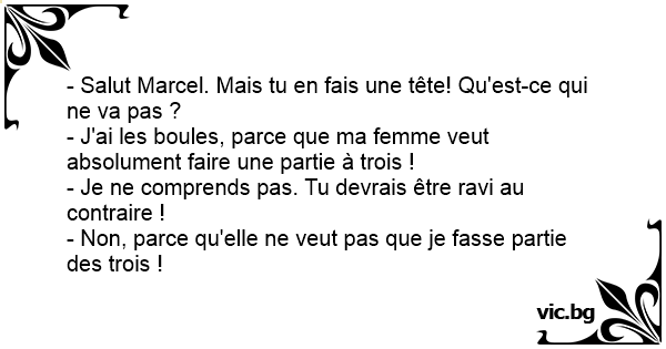 - J'ai les boules, parce que ma femme veut absolument faire une partie à trois !