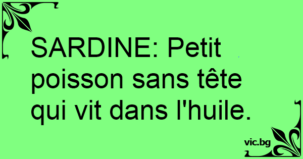 SARDINE: Petit poisson sans tête qui vit dans l'huile.