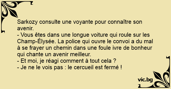 - Vous êtes dans une longue voiture qui roule sur les Champ-Élysée. La police qui ouvre le convoi a du mal à se frayer un chemin dans une foule ivre de bonheur qui chante un avenir meilleur.