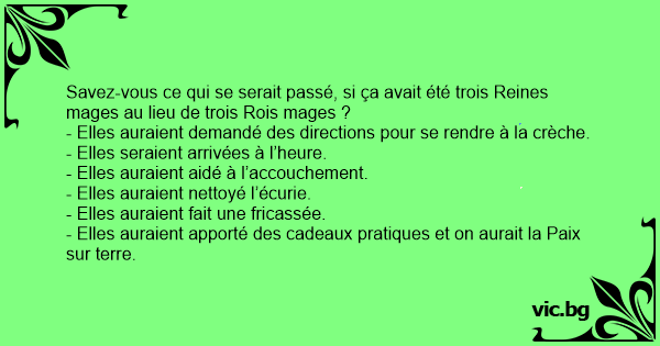 Savez-vous ce qui se serait passé, si ça avait été trois Reines mages au lieu de trois Rois mages ?