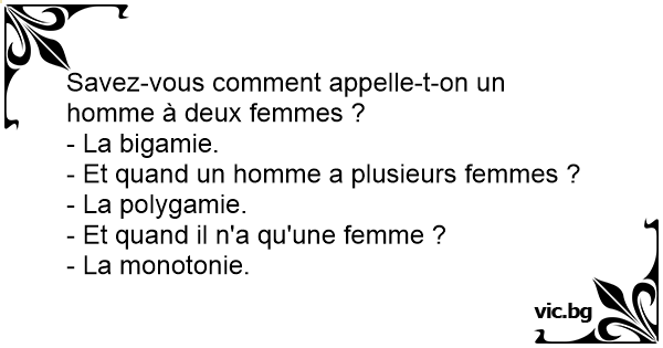 Savez-vous comment appelle-t-on un homme à deux femmes ?