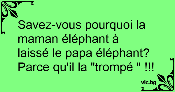Savez-vous pourquoi la maman éléphant à laissé le papa éléphant?