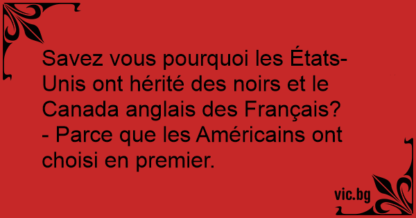 Savez vous pourquoi les États-Unis ont hérité des noirs et le Canada anglais des Français?
