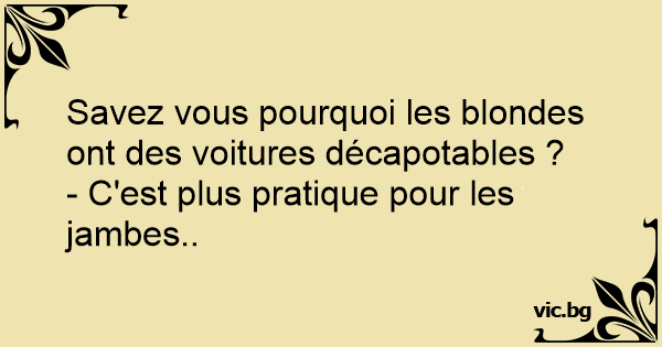 Savez vous pourquoi les blondes ont des voitures décapotables ? - C'est plus pratique pour les jambes..