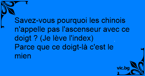 Savez-vous pourquoi les chinois n'appelle pas l'ascenseur avec ce doigt ? (Je lève l'index)