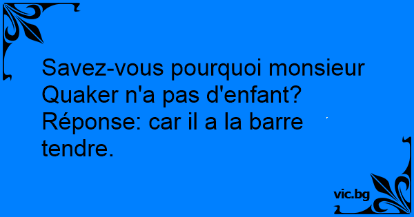 Savez-vous pourquoi monsieur Quaker n'a pas d'enfant?