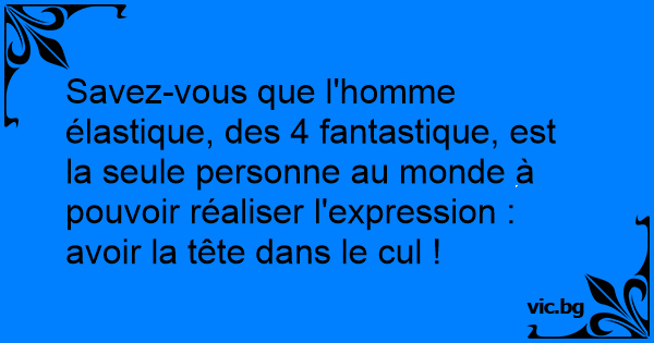 Savez-vous que l'homme élastique, des 4 fantastique, est la seule personne au monde à pouvoir réaliser l'expression : avoir la tête dans le cul !