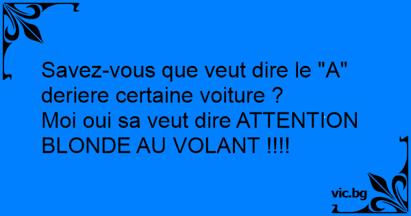 Moi oui sa veut dire ATTENTION BLONDE AU VOLANT !!!!