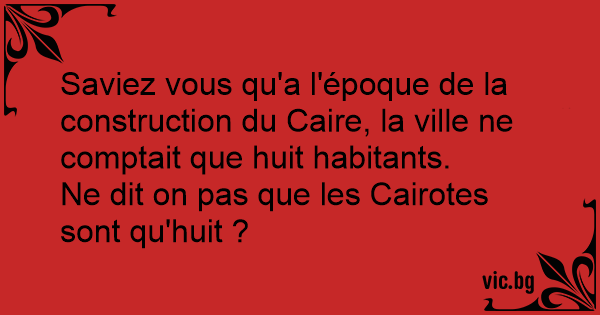 Saviez vous qu'a l'époque de la construction du Caire, la ville ne comptait que huit habitants.