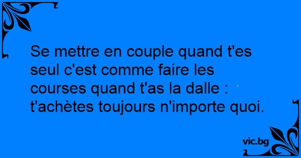 Se mettre en couple quand t'es seul c'est comme faire les courses quand t'as la dalle : t'achètes toujours n'importe quoi.