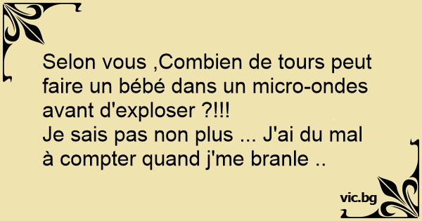 Selon vous ,Combien de tours peut faire un bébé dans un micro-ondes avant d'exploser ?!!!