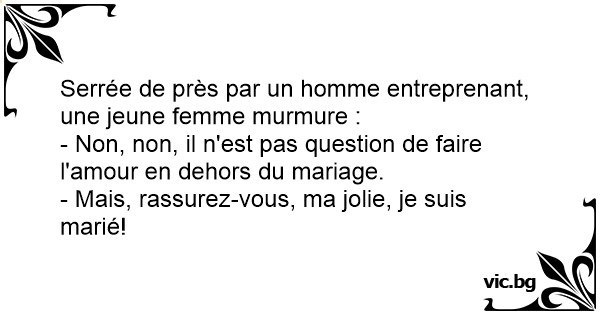 - Mais, rassurez-vous, ma jolie, je suis marié!