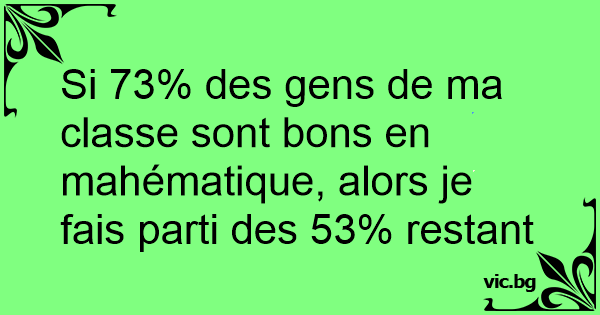Si 73% des gens de ma classe sont bons en mahématique, alors je fais parti des 53% restant