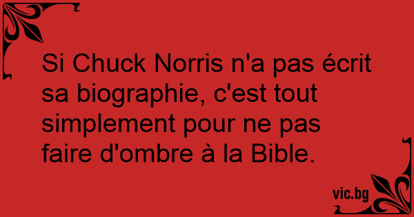 Si Chuck Norris n'a pas écrit sa biographie, c'est tout simplement pour ne pas faire d'ombre à la Bible.