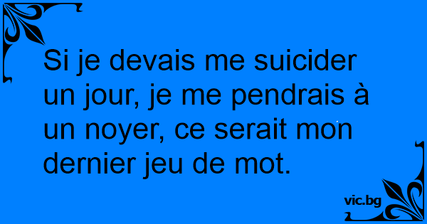 Si je devais me suicider un jour, je me pendrais à un noyer, ce serait mon dernier jeu de mot.