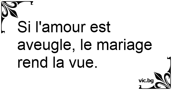 Si l'amour est aveugle, le mariage rend la vue.