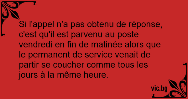 Si l'appel n'a pas obtenu de réponse, c'est qu'il est parvenu au poste vendredi en fin de matinée alors que le permanent de service venait de partir se coucher comme tous les jours à la même heure.