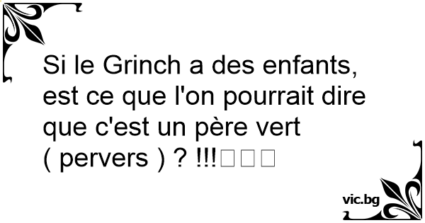 Si le Grinch a des enfants, est ce que l'on pourrait dire que c'est un père vert ( pervers ) ? !!!🤣🤣🤣