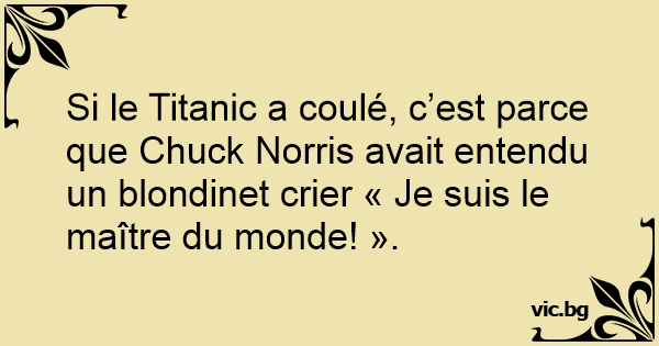 Si le Titanic a coulé, c’est parce que Chuck Norris avait entendu un blondinet crier « Je suis le maître du monde! ».
