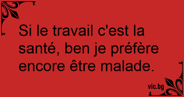 Si le travail c'est la santé, ben je préfère encore être malade.