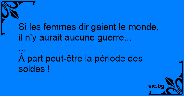 Si les femmes dirigaient le monde, il n'y aurait aucune guerre... ... À part peut-être la période des soldes !