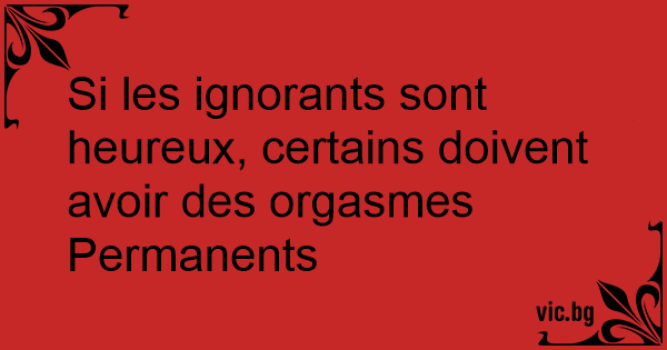 Si les ignorants sont heureux, certains doivent avoir des orgasmes