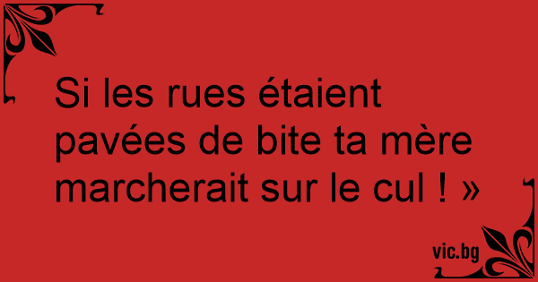 Si les rues étaient pavées de bite ta mère marcherait sur le cul ! »