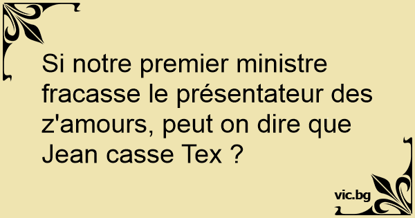 Si notre premier ministre fracasse le présentateur des z'amours, peut on dire que Jean casse Tex ?