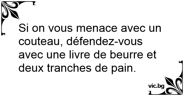 Si on vous menace avec un couteau, défendez-vous avec une livre de beurre et deux tranches de pain.