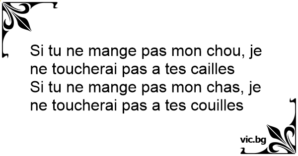 Si tu ne mange pas mon chas, je ne toucherai pas a tes couilles