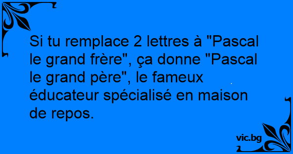 Si tu remplace 2 lettres à "Pascal le grand frère", ça donne "Pascal le grand père", le fameux éducateur spécialisé en maison de repos.
