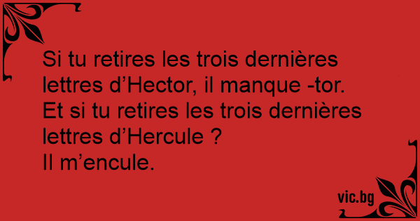 Si tu retires les trois dernières lettres d’Hector, il manque -tor.
