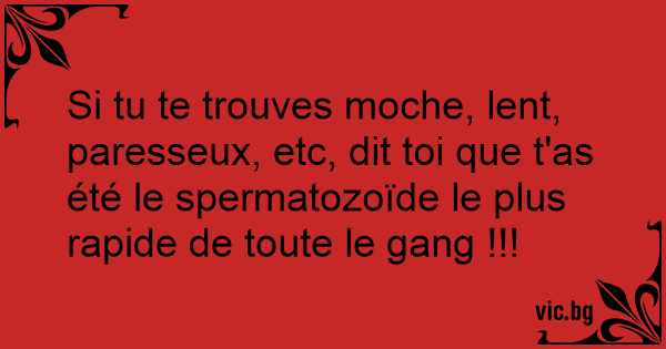 Si tu te trouves moche, lent, paresseux, etc, dit toi que t'as été le spermatozoïde le plus rapide de toute le gang !!!