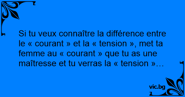 Si tu veux connaître la différence entre le « courant » et la « tension », met ta femme au « courant » que tu as une maîtresse et tu verras la « tension »…