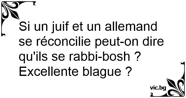 Si un juif et un allemand se réconcilie peut-on dire qu'ils se rabbi-bosh ? Excellente blague ?