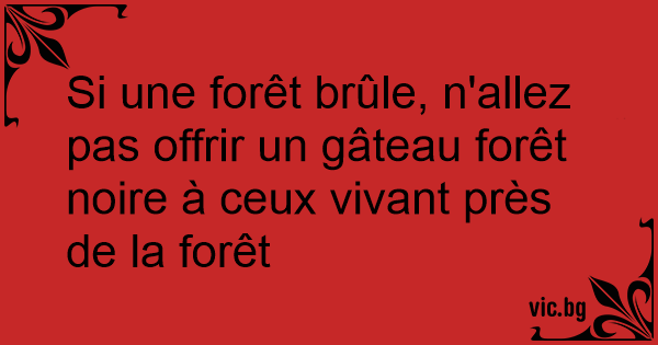 Si une forêt brûle, n'allez pas offrir un gâteau forêt noire à ceux vivant près de la forêt