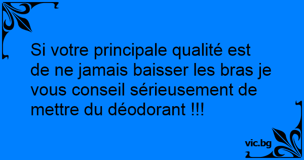 Si votre principale qualité est de ne jamais baisser les bras je vous conseil sérieusement de mettre du déodorant !!!