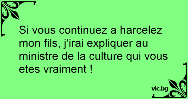 Si vous continuez a harcelez mon fils, j'irai expliquer au ministre de la culture qui vous etes vraiment !