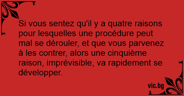 Si vous sentez qu'il y a quatre raisons pour lesquelles une procédure peut mal se dérouler, et que vous parvenez à les contrer, alors une cinquième raison, imprévisible, va rapidement se développer.