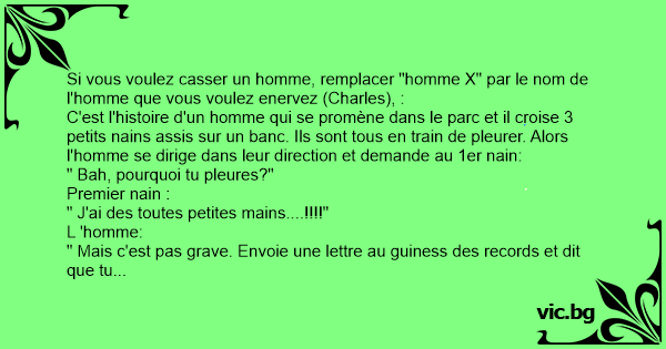 Si vous voulez casser un homme, remplacer "homme X" par le nom de l'homme que vous voulez enervez (Charles), :