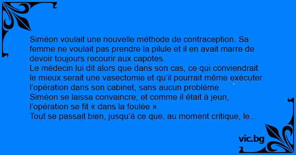 Quelques semaines plus таrd, Siméon revint voir son médecin pour le contrôle post-opératoire. Quand le docteur lui demanda comment les choses allaient, Siméon répondit :