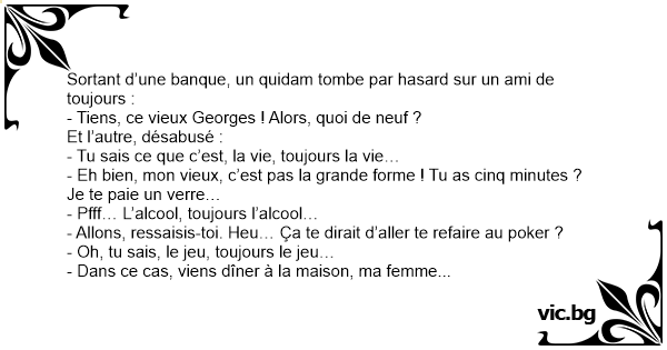 - Tiens, ce vieux Georges ! Alors, quoi de neuf ?