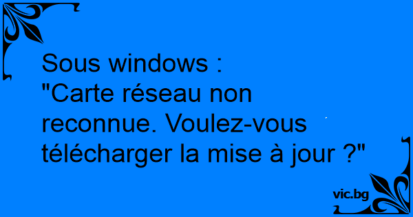 "Carte réseau non reconnue. Voulez-vous télécharger la mise à jour ?"