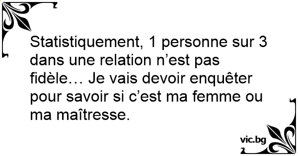 Statistiquement, 1 personne sur 3 dans une relation n’est pas fidèle… Je vais devoir enquêter pour savoir si c’est ma femme ou ma maîtresse.