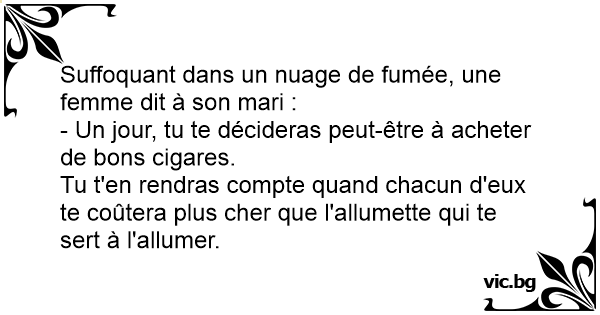 Suffoquant dans un nuage de fumée, une femme dit à son mari :