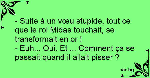 - Suite à un vœu stupide, tout ce que le roi Midas touchait, se transformait en or !