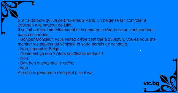 Sur l'autoroute qui va de Bruxelles à Paris, un belge se fait contrôler à 250km/h à la hauteur de Lille.