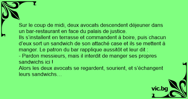 Alors les deux avocats se regardent, sourient, et s’échangent leurs sandwichs…