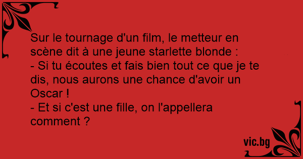 Sur le tournage d'un film, le metteur en scène dit à une jeune starlette blonde :