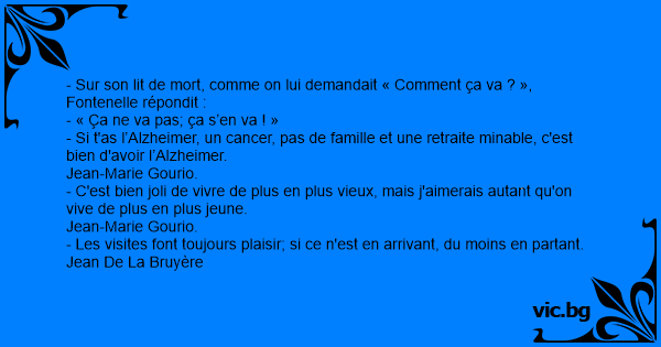 - Sur son lit de mort, comme on lui demandait « Comment ça va ? », Fontenelle répondit :